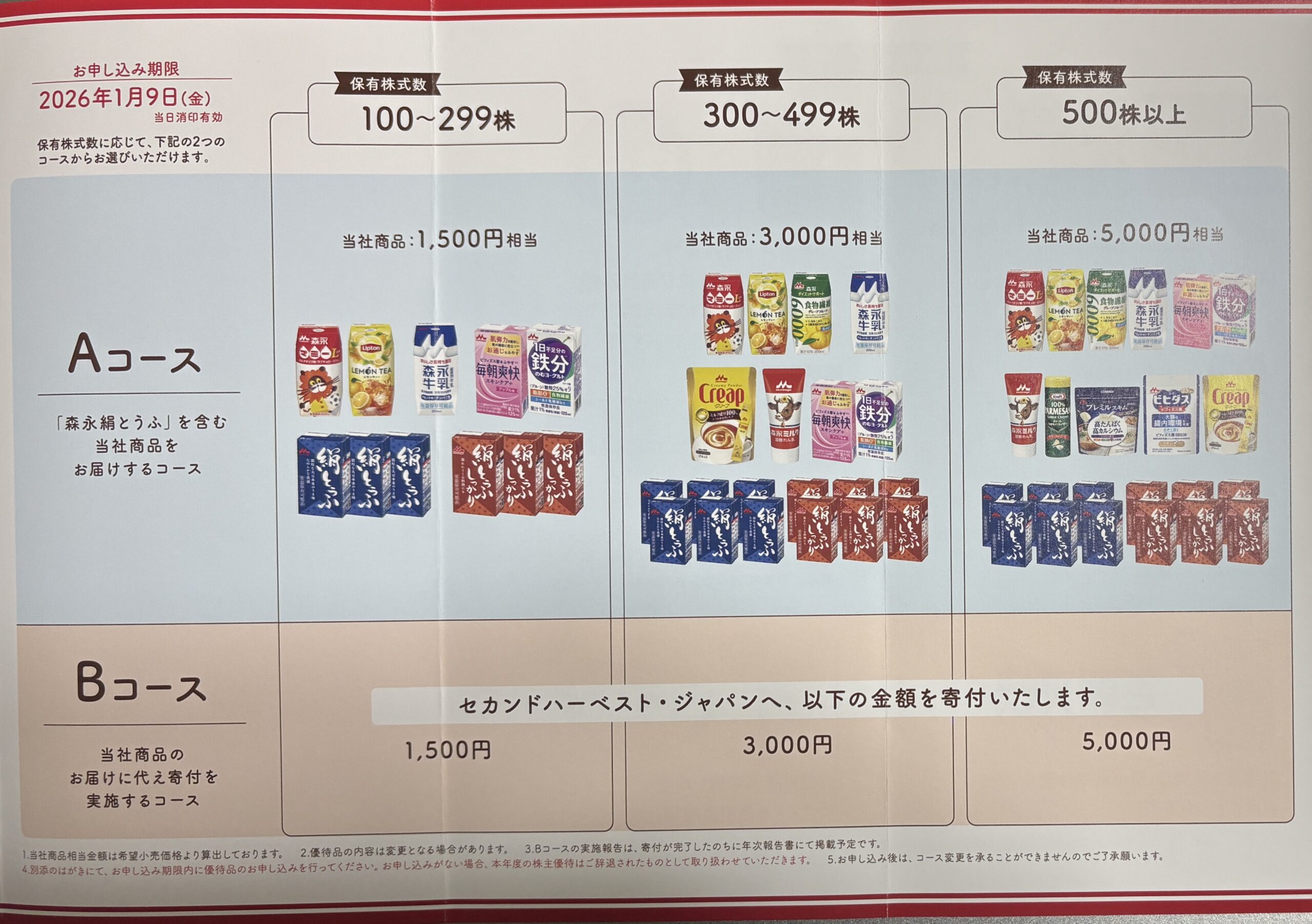 9月権利 森永乳業の優待案内が届いています(12/9到着)