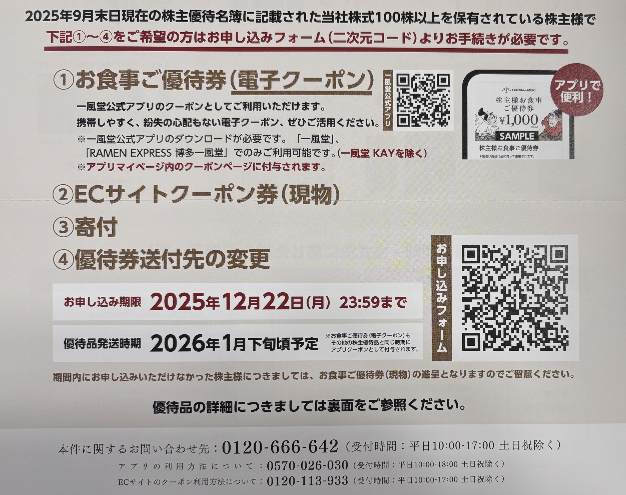 前回、3月権利でいただいた優待券4000円分の期限は、2026年1月31日までで、