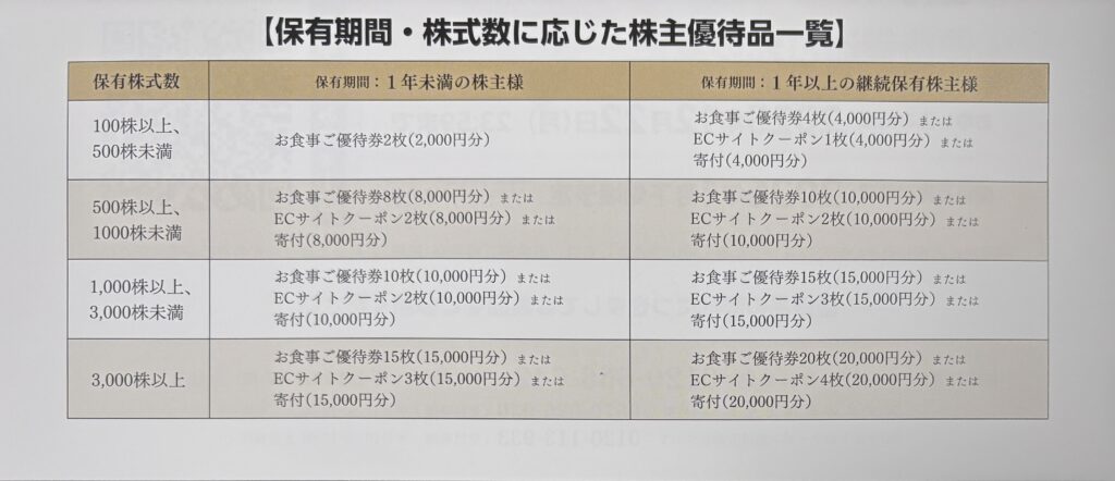 ブルボンは、6カ月の保有期間は付きますが、200株、500株区分の新設、3年以上ではオンラインクーポン追加の拡充