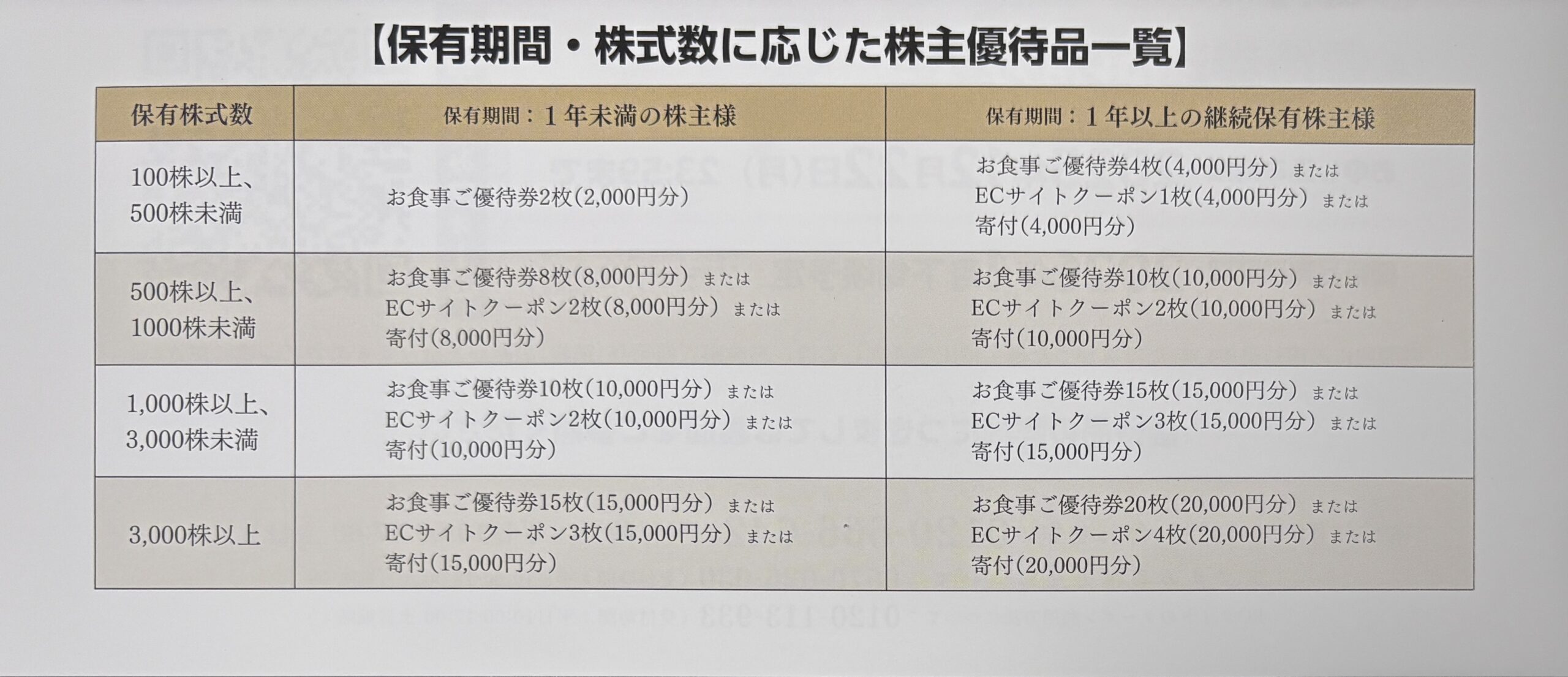 | 3003 | ヒューリック | カタログ(グルメ) | 2年以上、300株以上 |