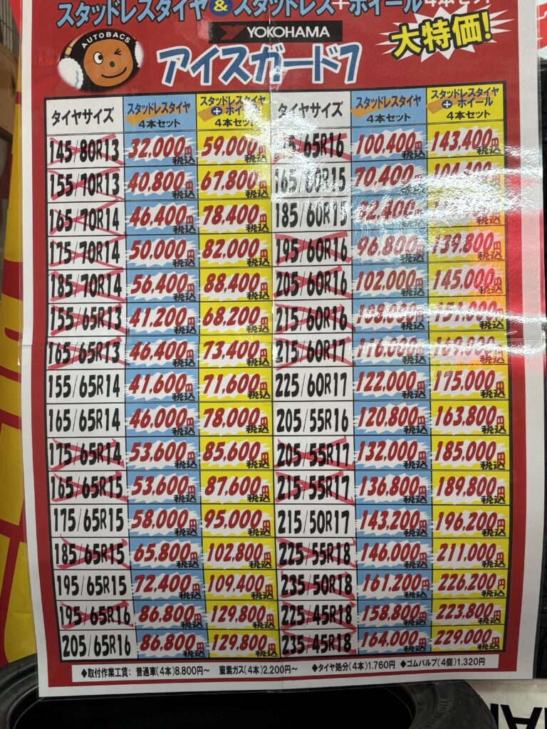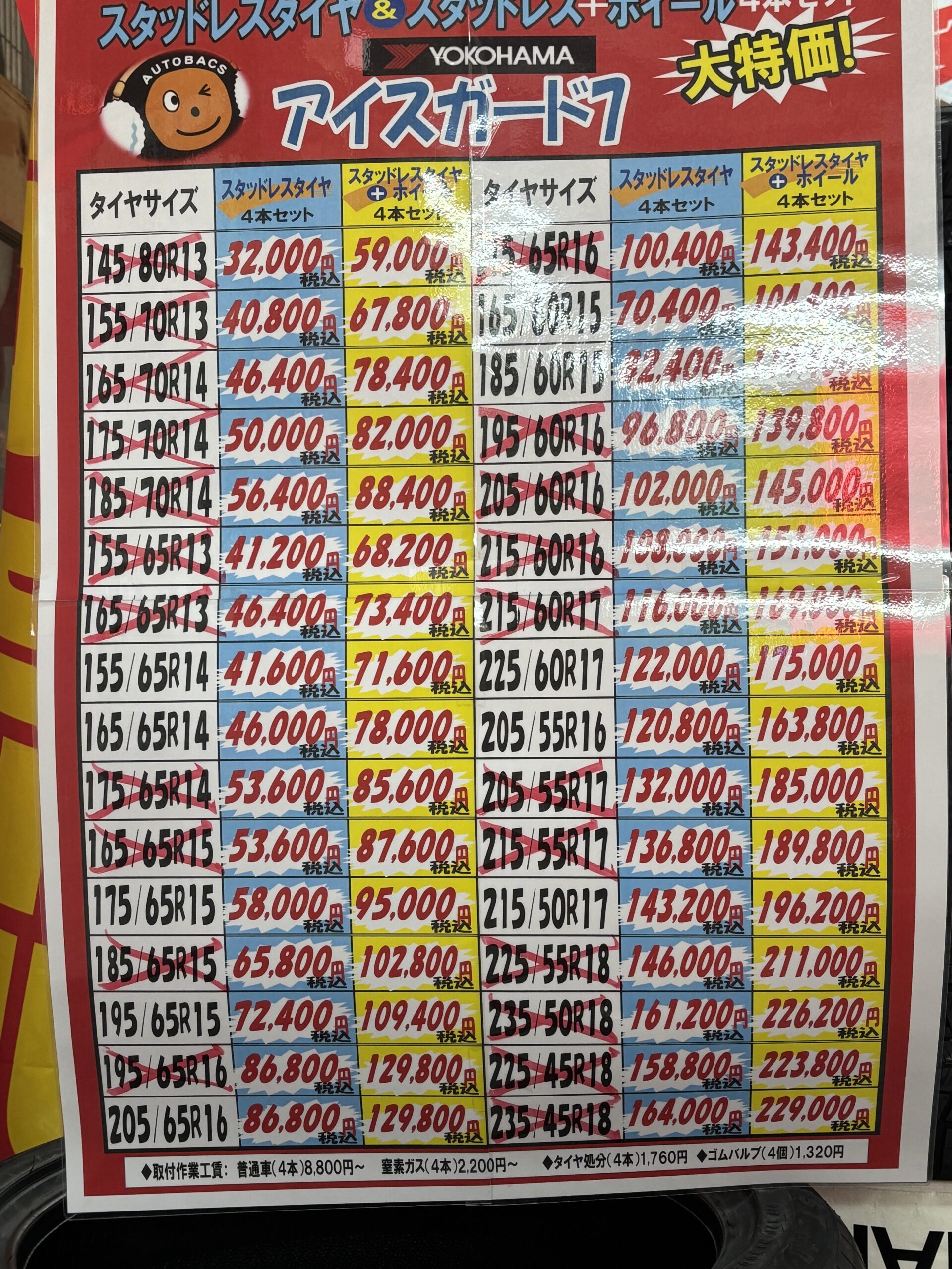 軽などならもっとタイヤが安いのだろうなと思いますが、仕方ないですね(;^ω^)