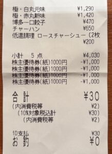 これだけ頼んで、お会計の持ち出しは数十円。 優待パワー、恐るべしです。