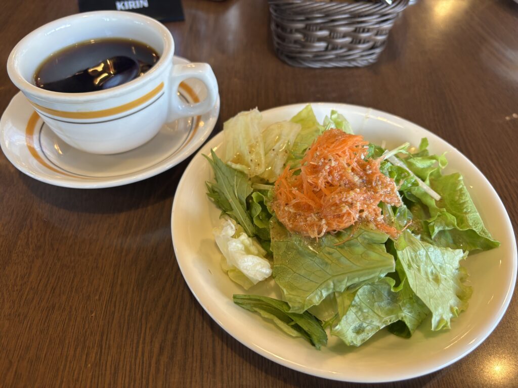 サラダセット(サラダ・ライスまたはパン)とコーヒーを付けました。
