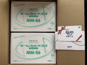 昨年11/4のブログで申し込みをご報告した、ホギメディカルのマスクとクオカードが