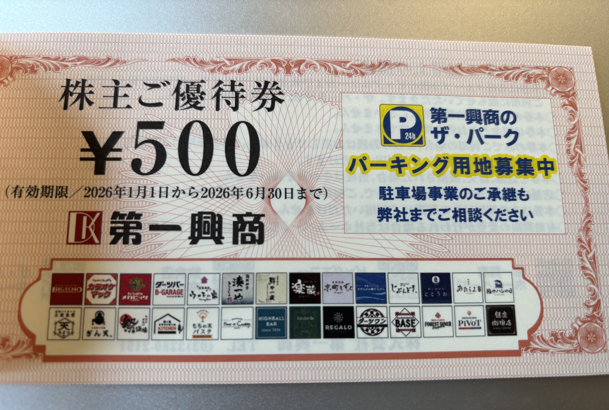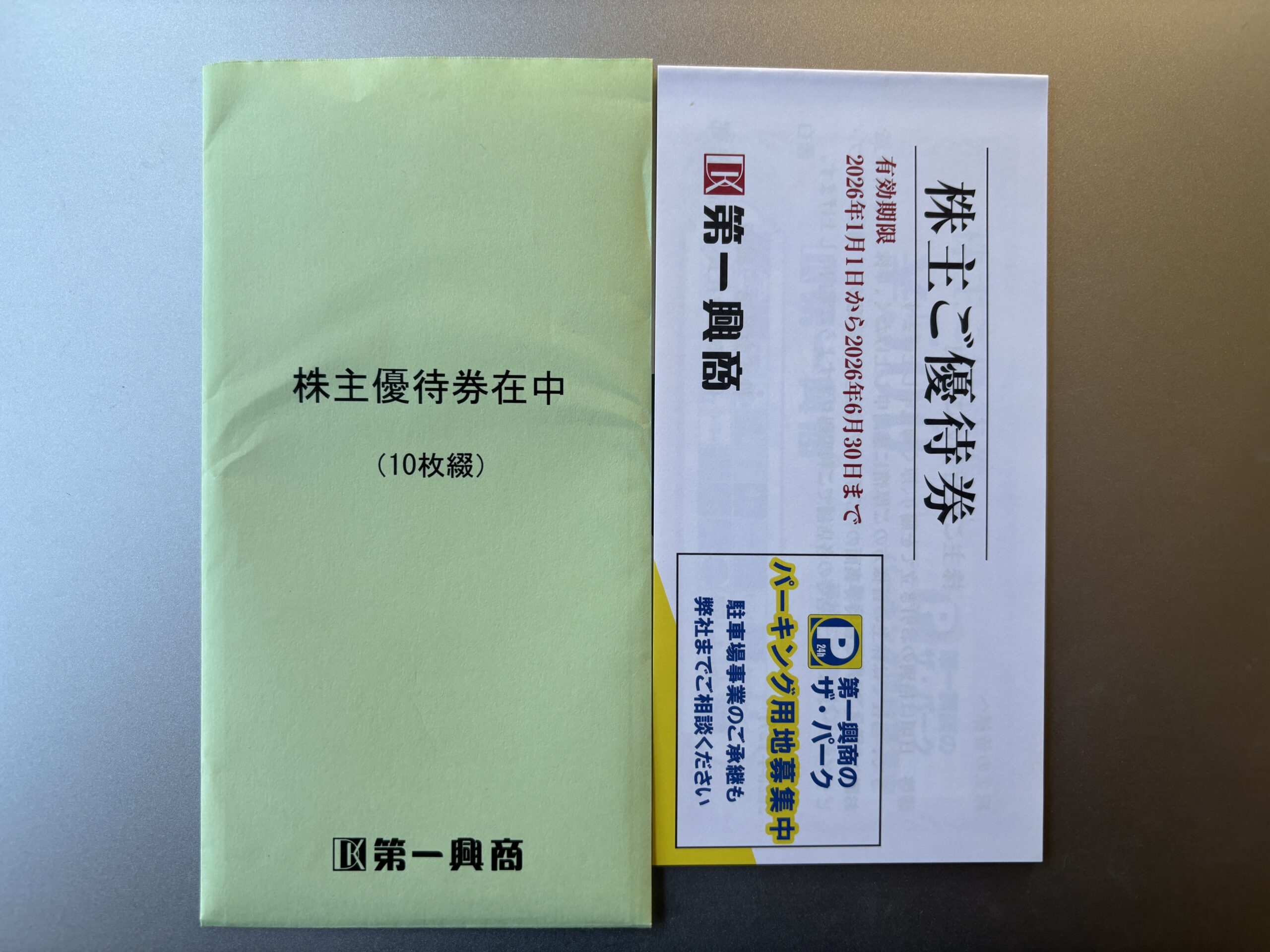 9月権利の 第一興商 の株主優待券が届きました (2025年12月8日到着)