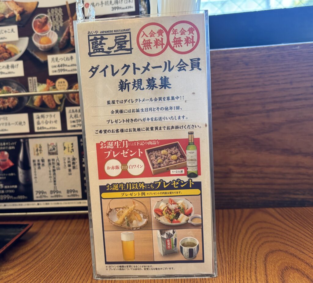 会員になると、お誕生日とその他年1回、プレゼント付きのハガキが届きます。