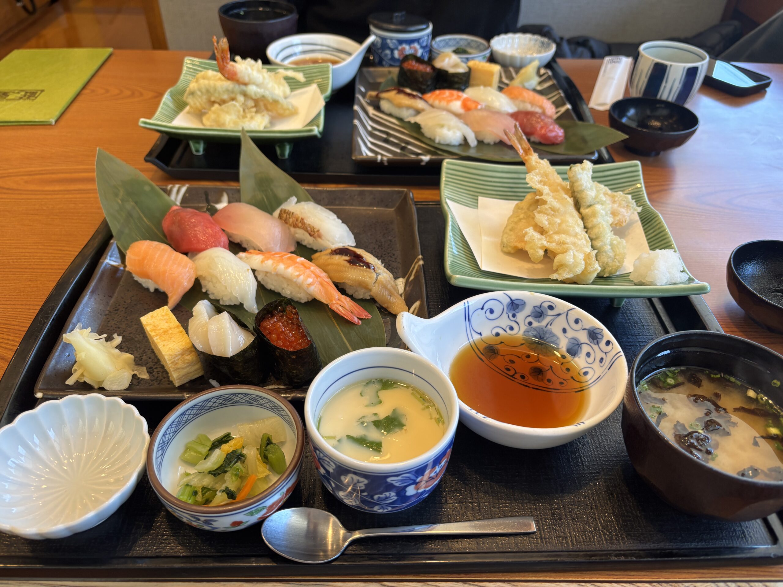 お寿司もたっぷりの量で、さらに天ぷら、茶碗蒸しまで付いてお腹いっぱいです(*^-^*)