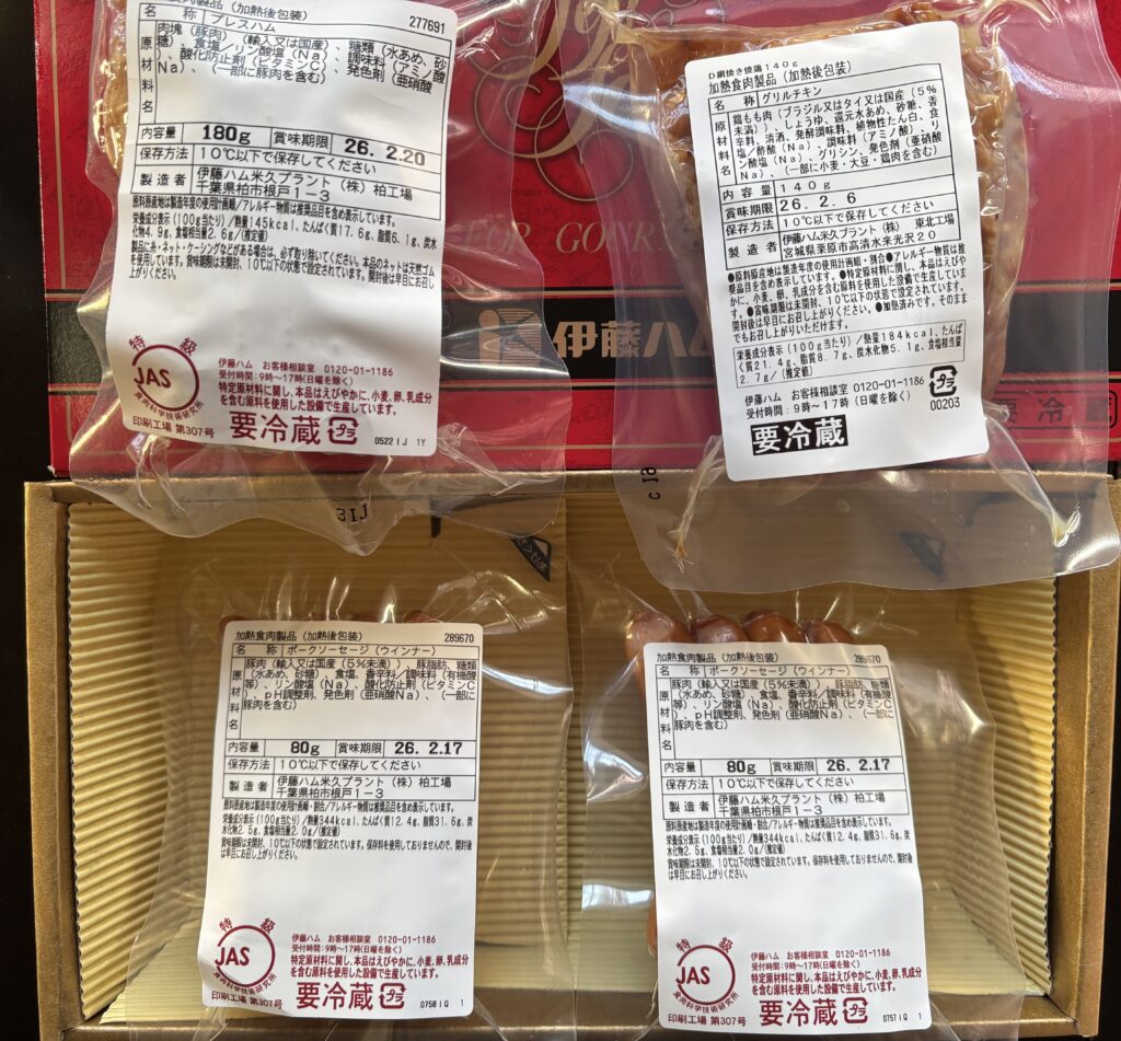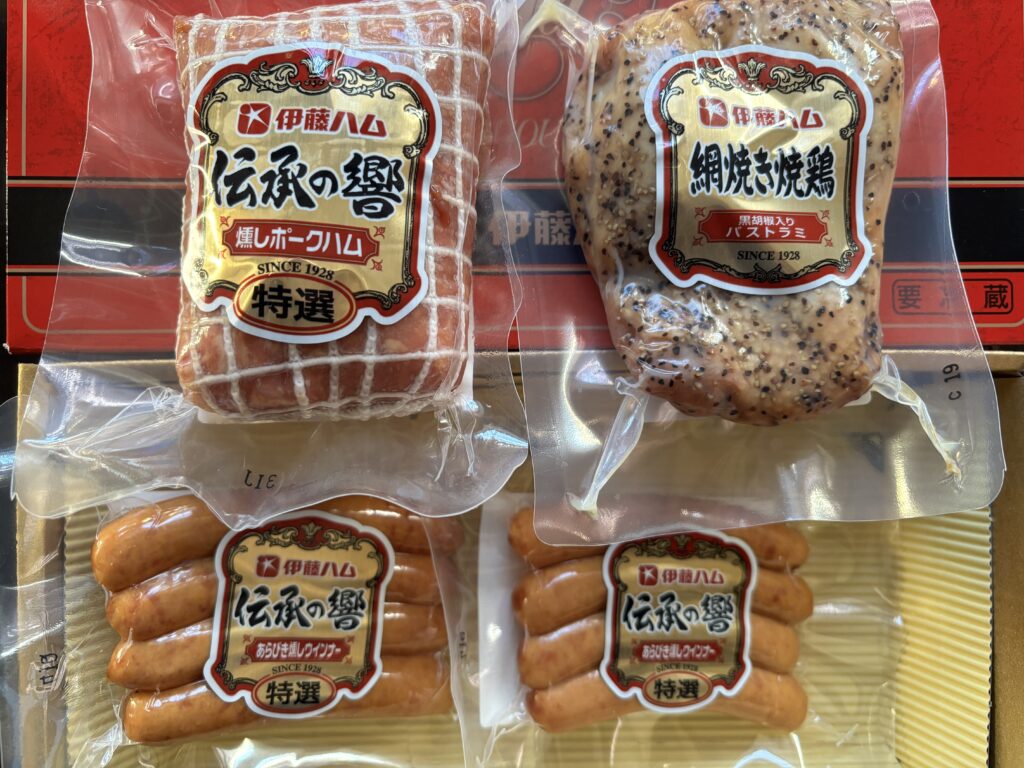 ▼届いた優待品はこちら 「伊藤ハム 伝承の響詰合せ」