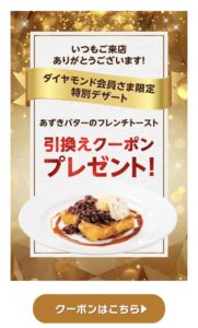 デニーズのダイヤモンド会員特典で、無料で食べられるデザートクーポンが