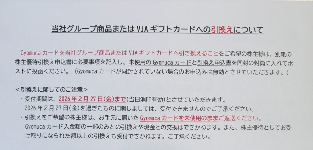 ▼というわけで…… 同封されていた封筒を返送し、VJAギフトカードと交換していただこうと思います。