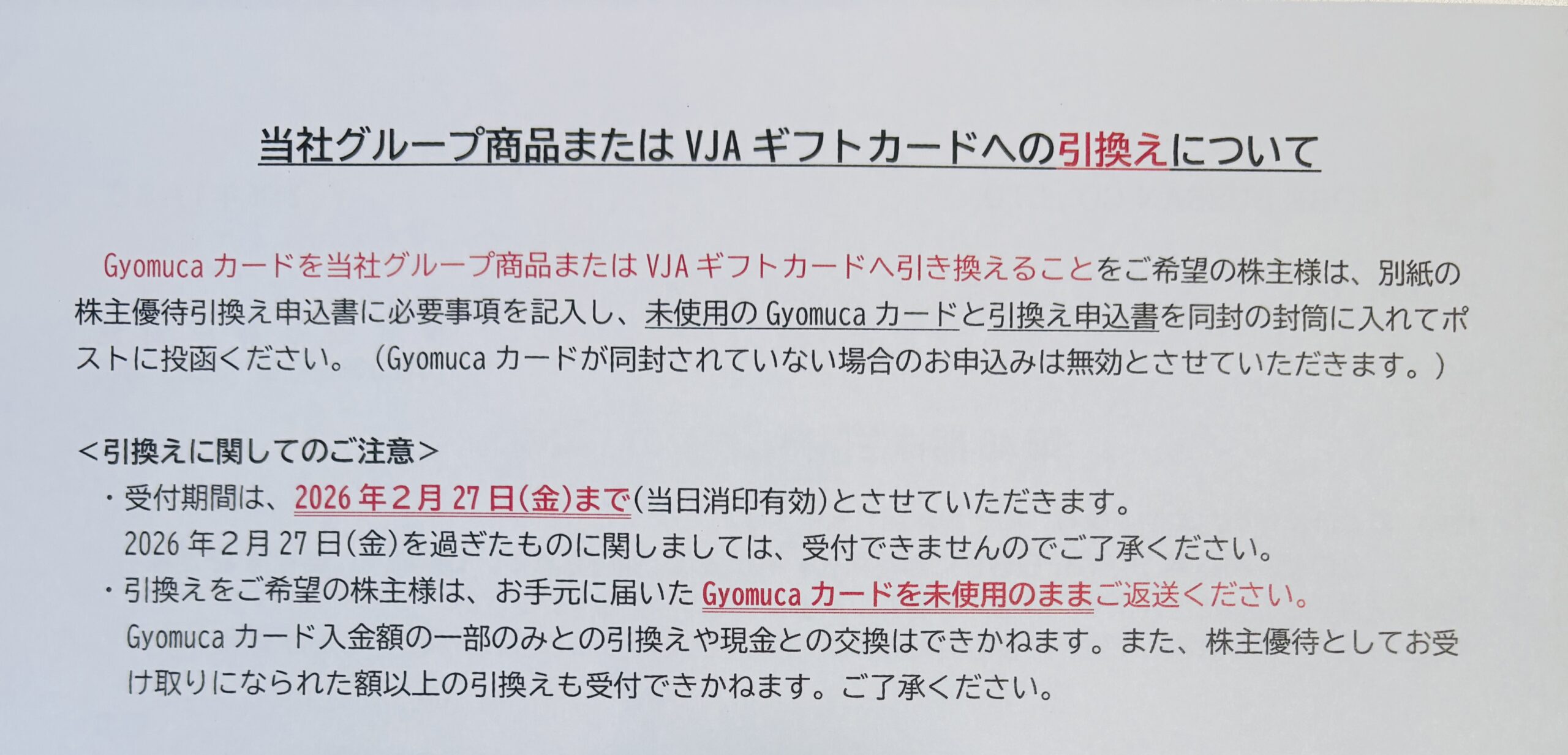▼というわけで…… 同封されていた封筒を返送し、VJAギフトカードと交換していただこうと思います。
