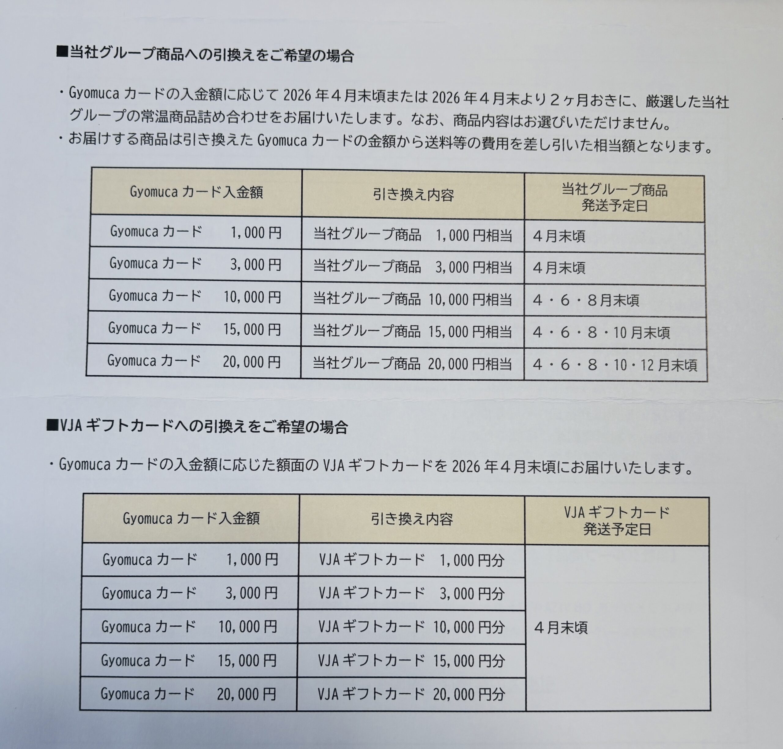 ※希望によりカードと同等額のVJAギフトカードまたは自社グループ商品詰合せと交換可