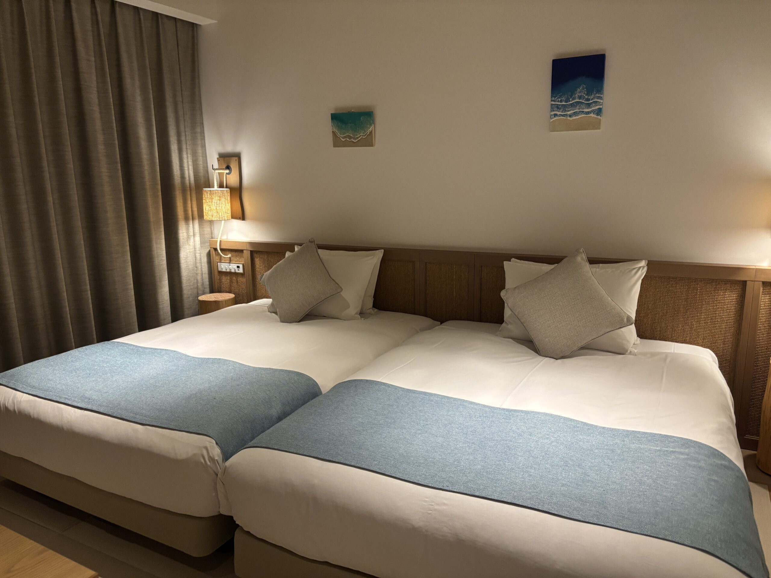 ▼今回は、こちらの「コンセプトルーム」に宿泊しました。 公式サイトによると、「沖縄の海と空を連想させる伝統工芸品やアートを使用しており、爽やかな沖縄を感じられる配色のお部屋」とのこと。期待が高まりますね♪