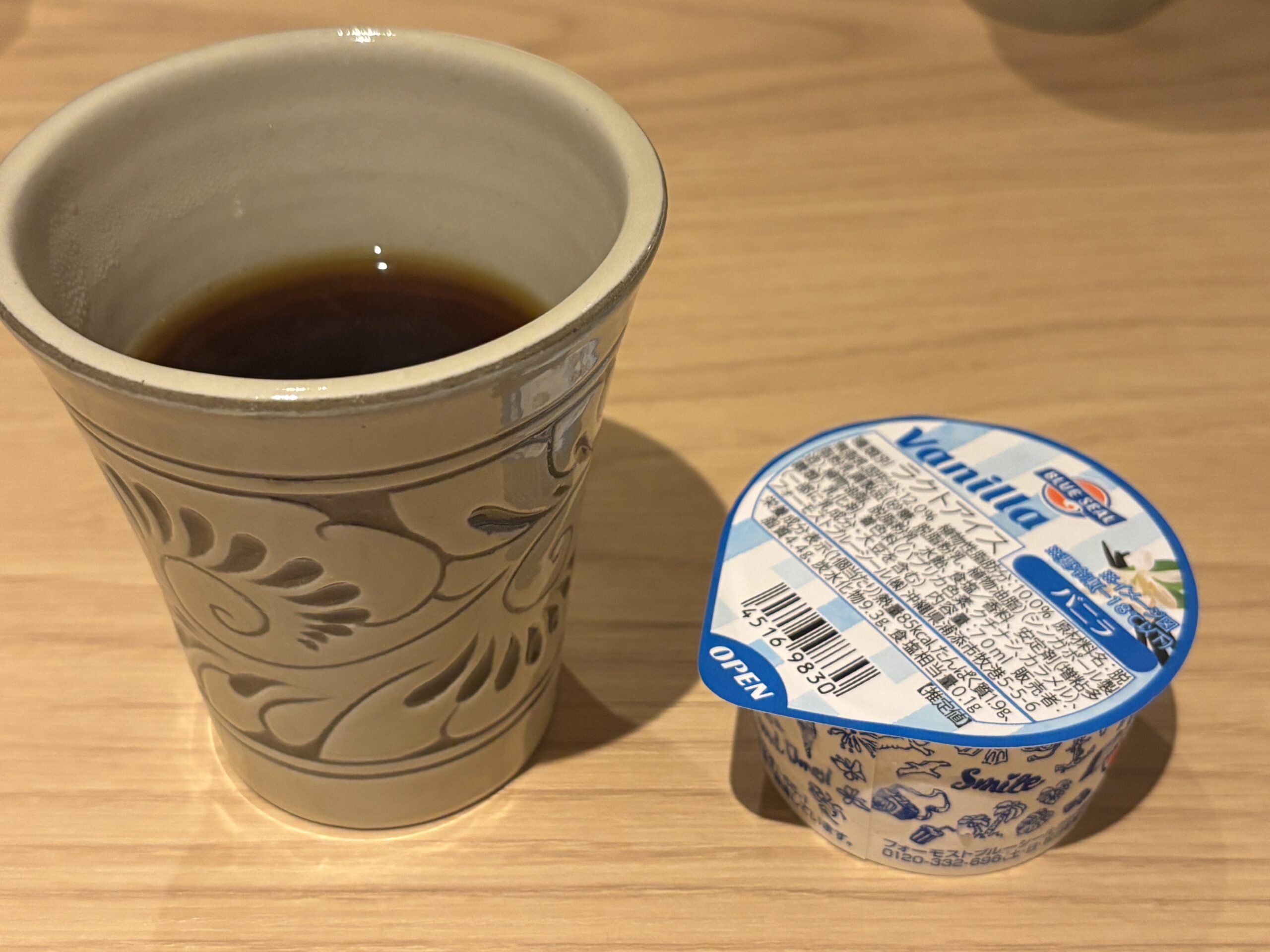 ▼チェックイン時に、3種類から選べる特典があり、2人とも迷わず「ブルーシールのアイス」を選択!お部屋でコーヒーを入れて一緒にいただきました。 ちなみに、あと2種類の特典は……すみません、忘れました(^-^;