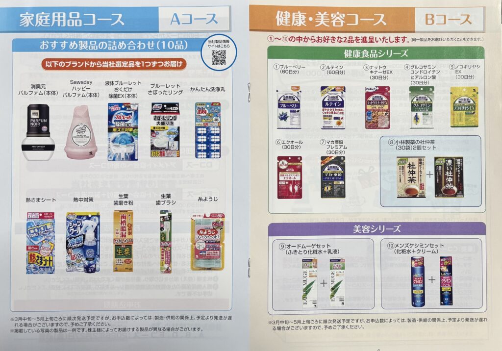 12月権利の 小林製薬から優待案内が届いています (2/6到着)