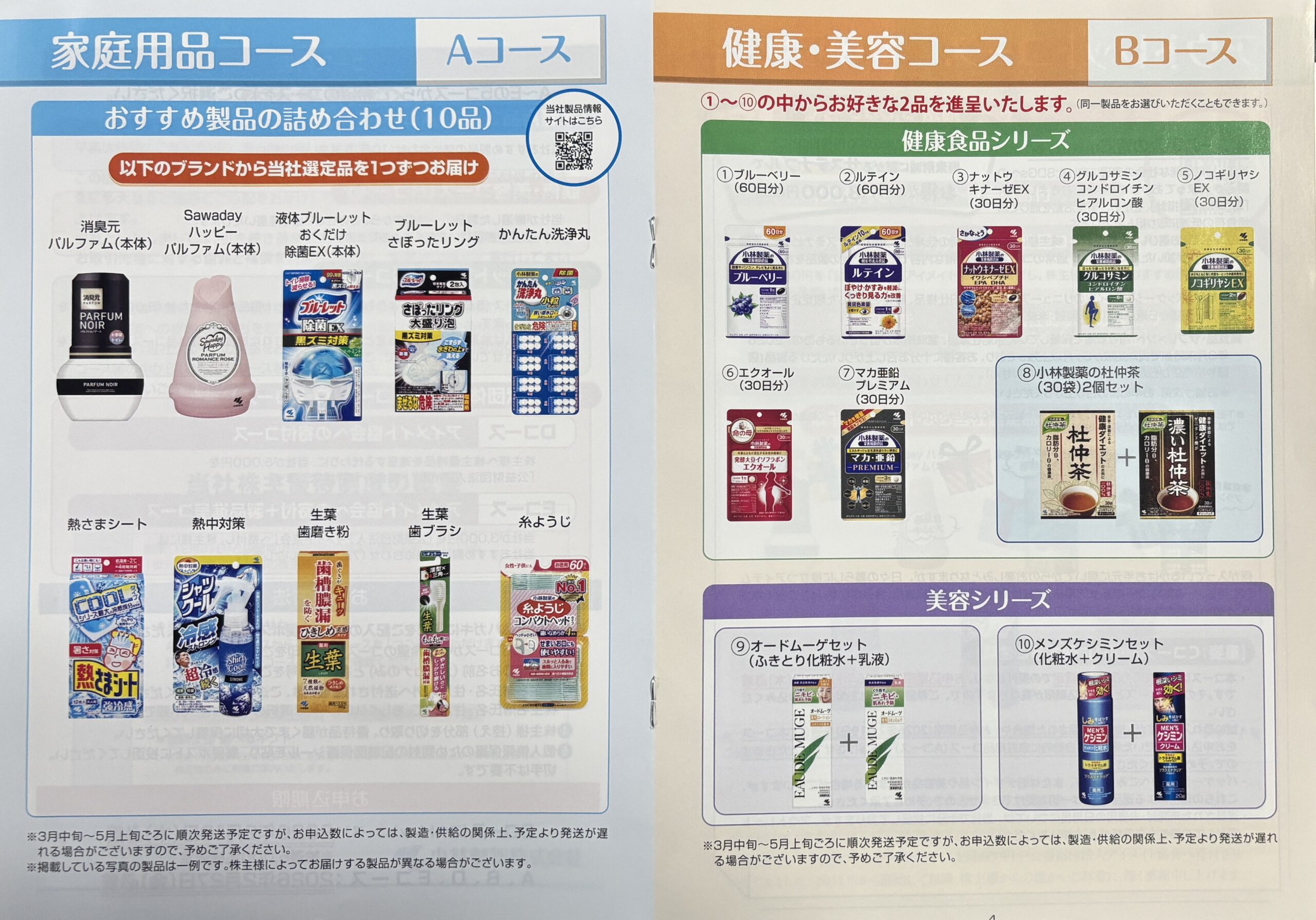 ・Bコース 健康・美容コース(健康食品、美容シリーズから2品選択)