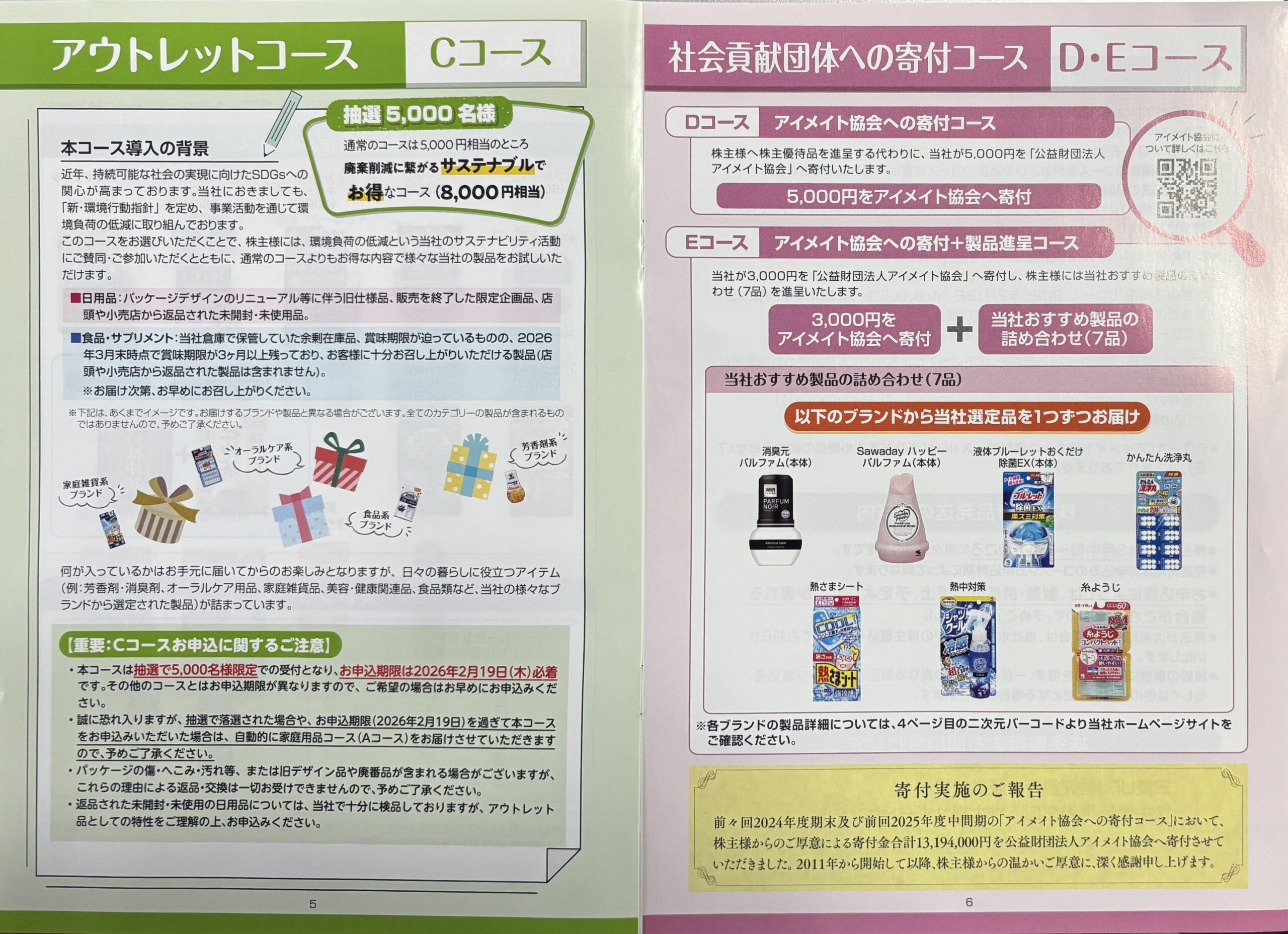 ・Eコース アイメイト協会への寄付+製品7品