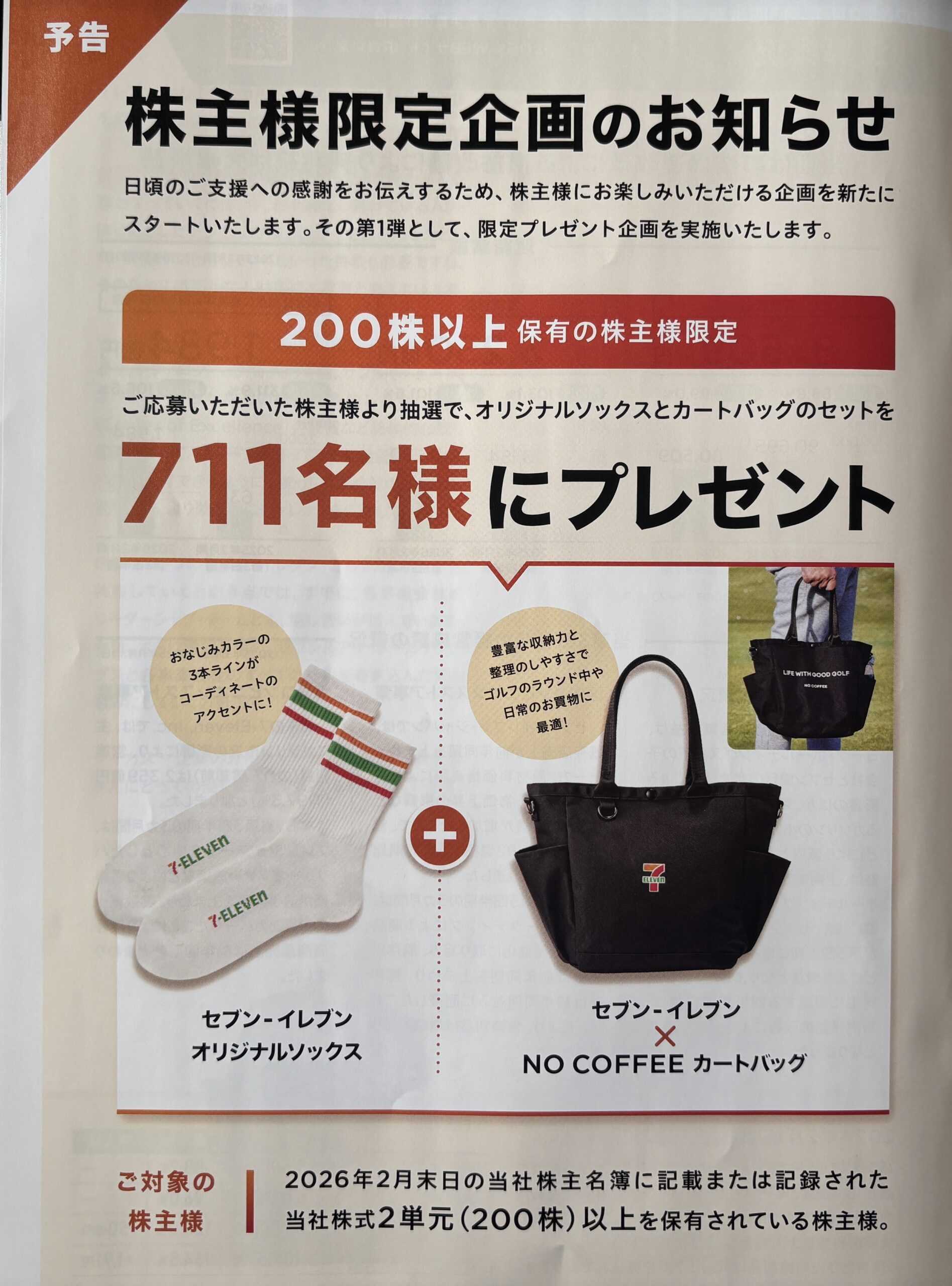 2月末日に200株以上を保有している株主が対象とのこと。