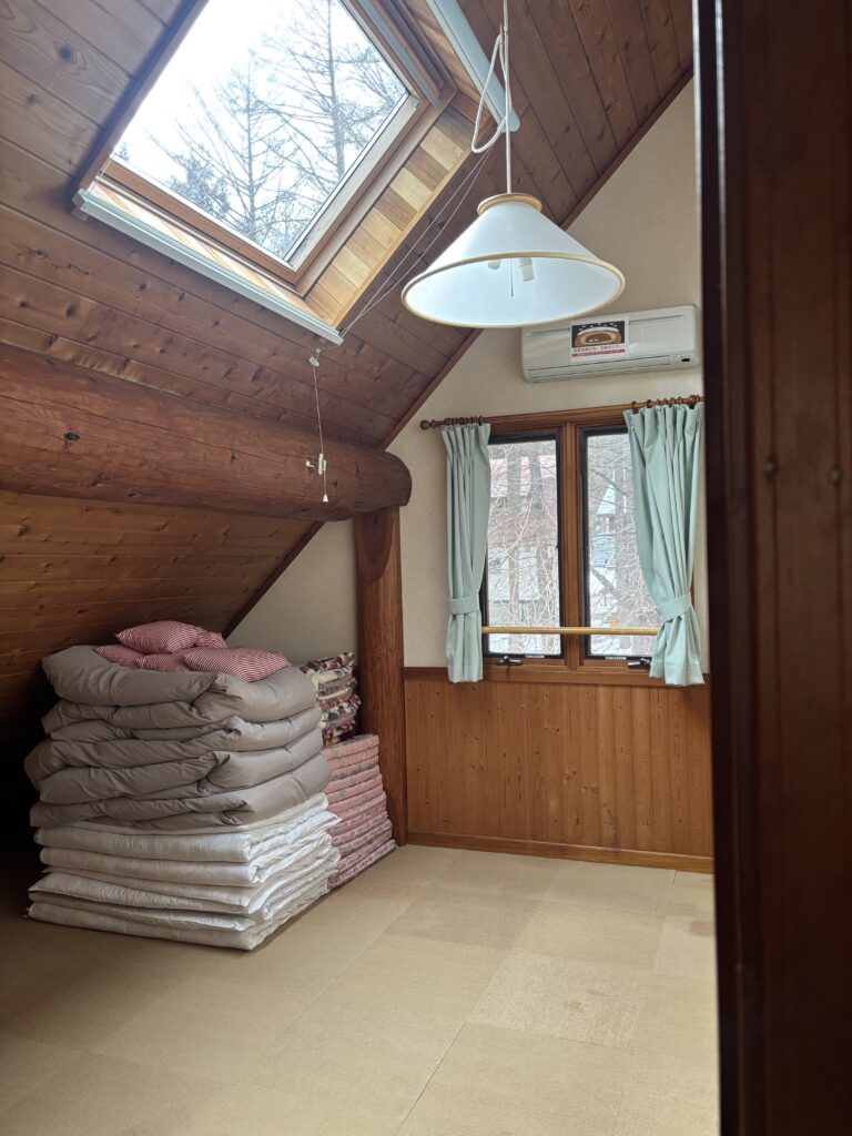 2階にふた部屋あり、そちらに布団を敷いて寝ます。
