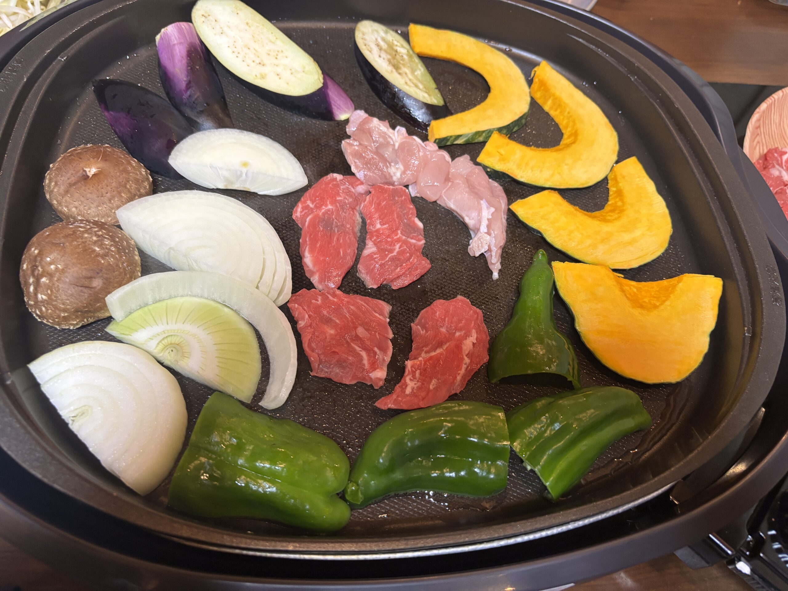 夕食は外でバーベキューをしても良いし、リビングで焼肉をしても良いということで、お肉とお野菜、あとスモークチップ用にチーズやかまぼこ、ナッツなどが付いていました。