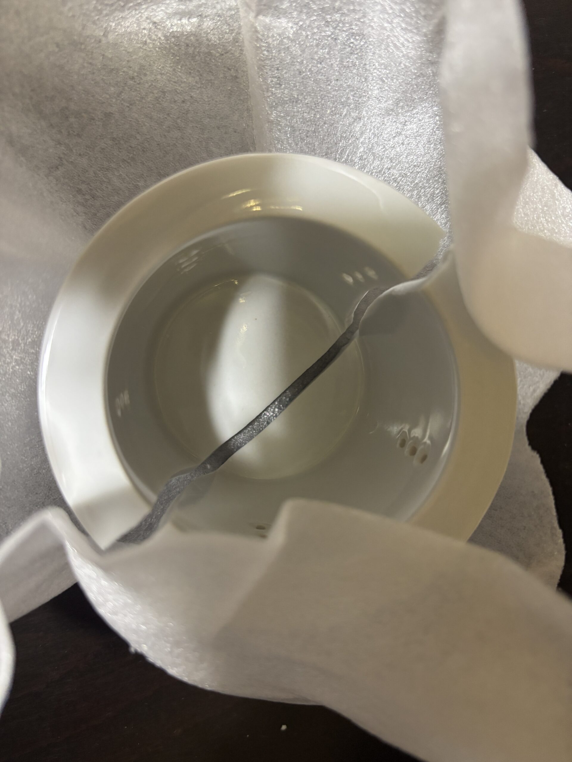 配送箱に「ワレモノ注意」のシールがなかったので、これでは割れても仕方ないよね……とガッカリ。