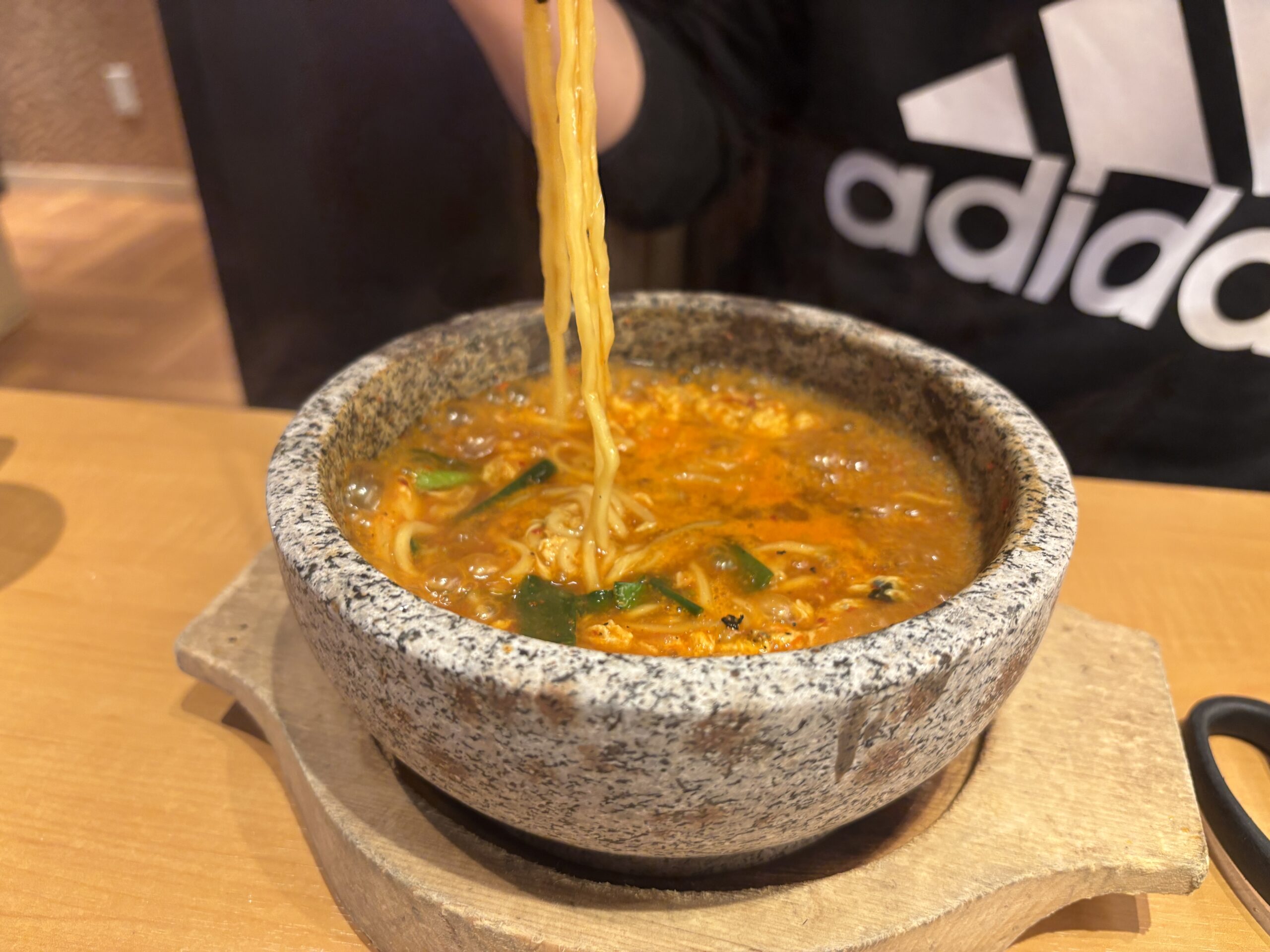 ずっとグツグツの状態が続きます。卵とチーズをトッピングしたらめっちゃ美味しかったです!