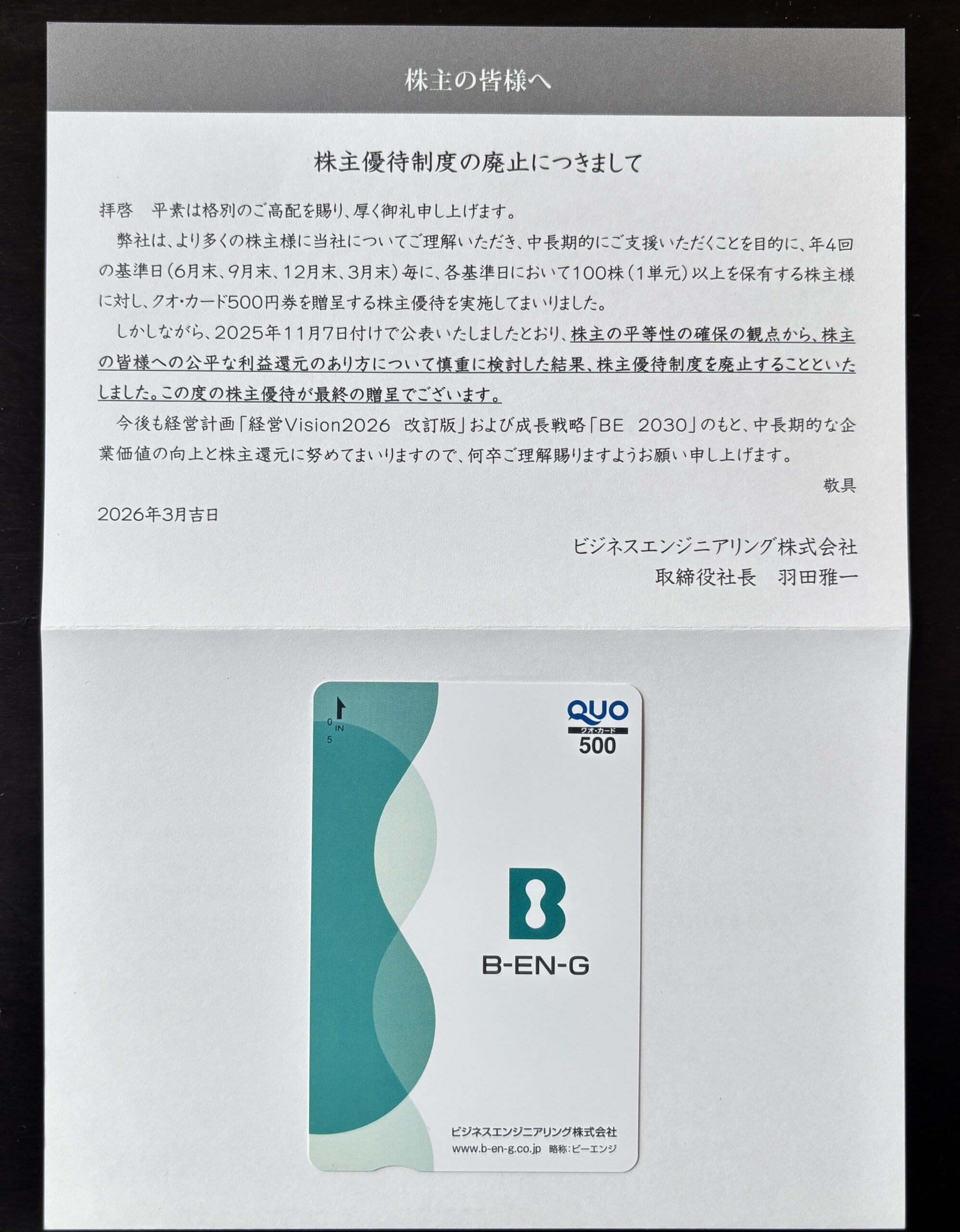 - ビーアンドピー 株主優待制度の変更に関するお知らせ
