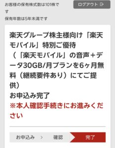 優待 12月権利 100株以上 「楽天モバイル」の音声+データ(30GB / 月)6カ月無料
