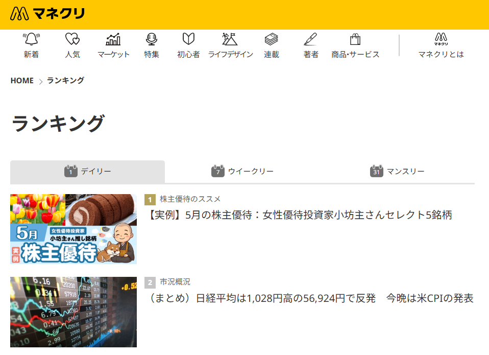 マネックス証券の「マネクリ」に「5月の株主優待5銘柄」を掲載していただきました!