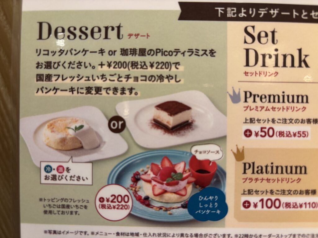 セット+220円でいちごのパンケーキになるのも良いですね♪