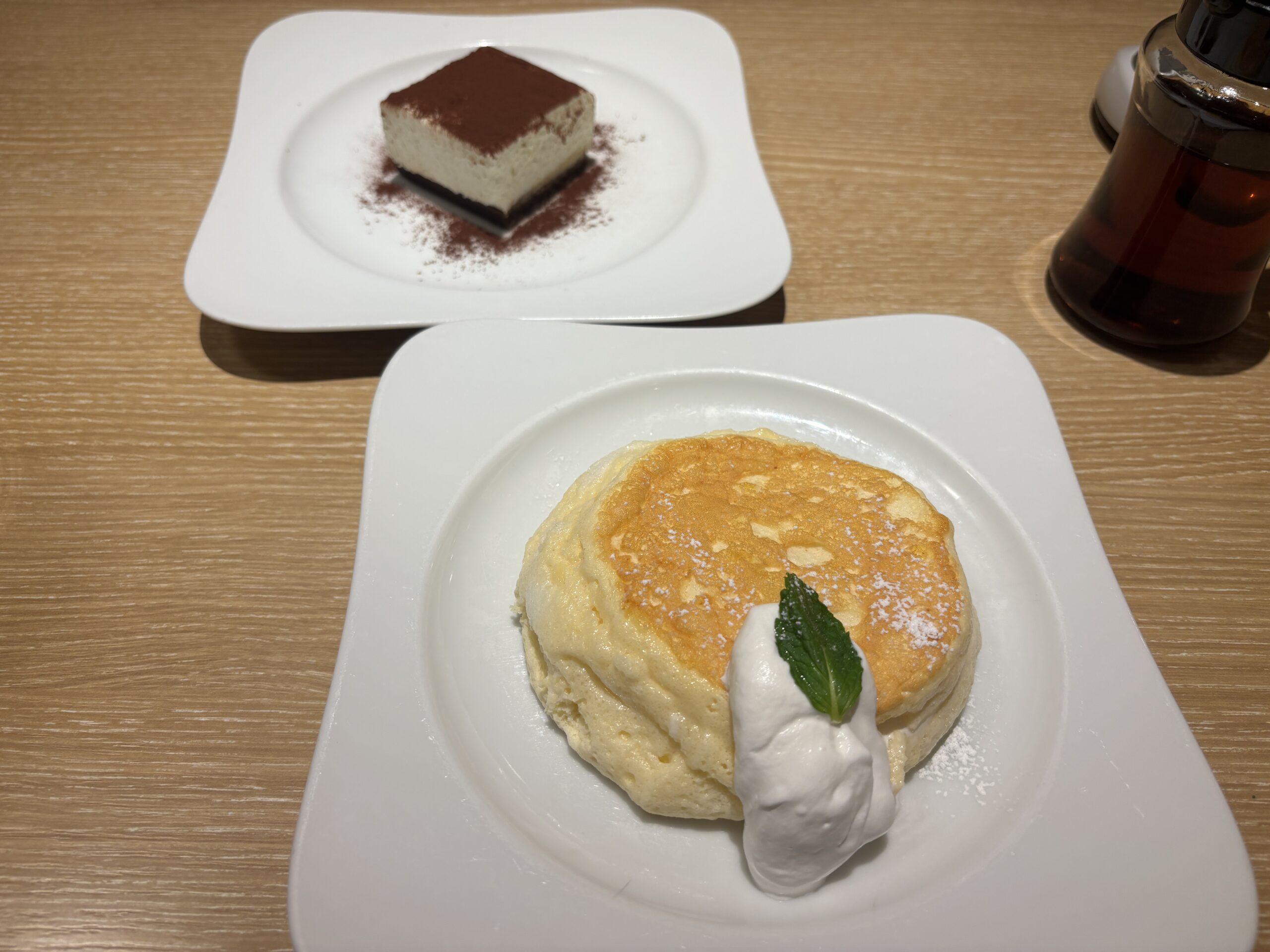 私は安定の「冷たいリコッタパンケーキ」、ぴよちゃんは「ティラミス」に。