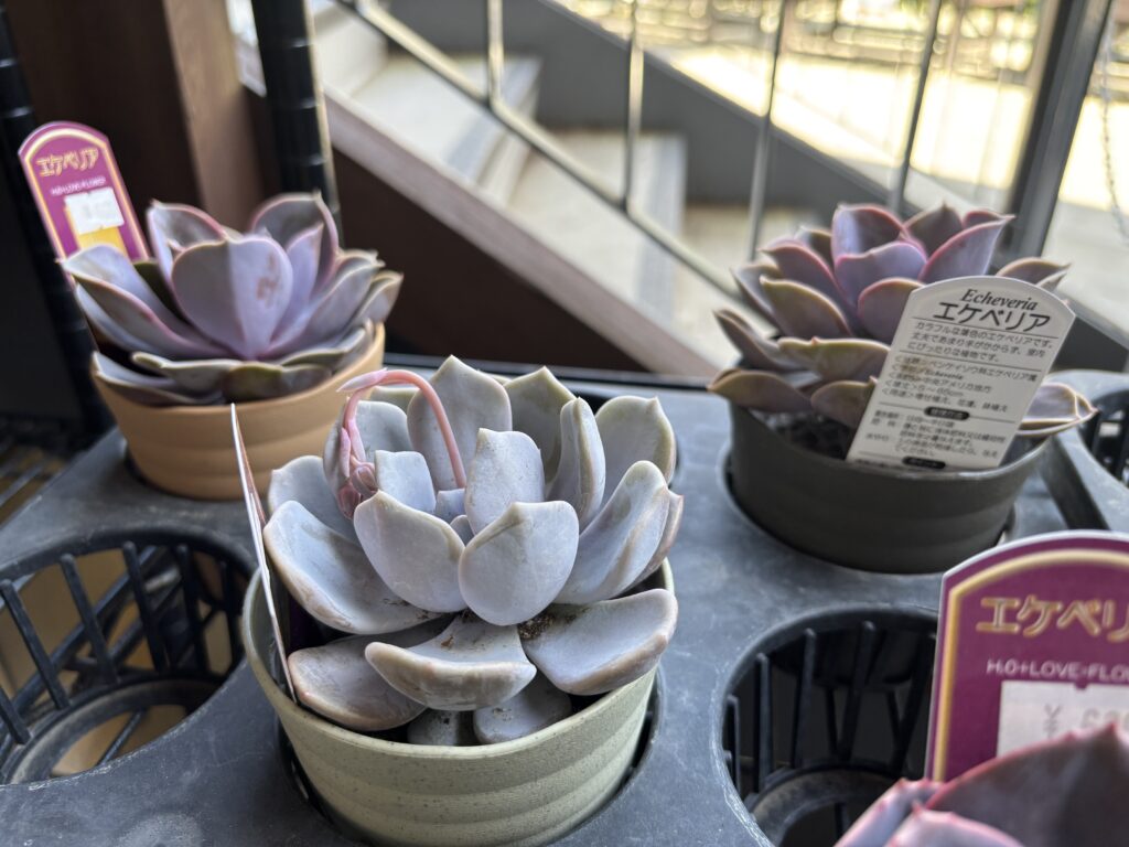 多肉植物(エケベリア)の立派な鉢が700円ほどで売られていて、都内価格との差に買いそうになりましたが、