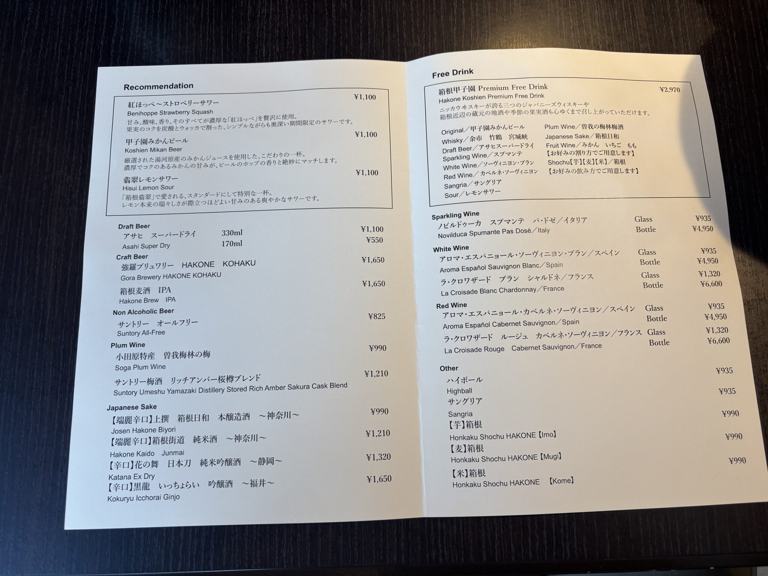 せっかくなので、フリードリンク(2,970円)を注文しました。